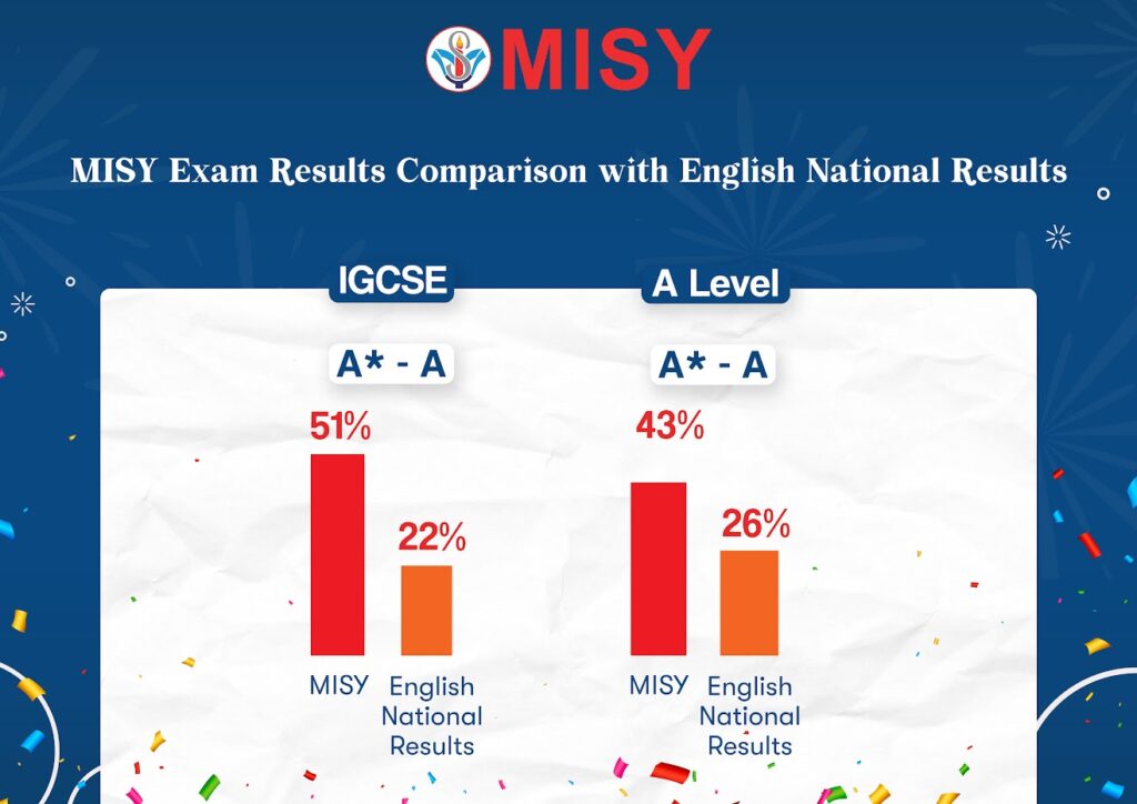 Let’s continue celebrating the astounding success of MISY students! π π In a side-by-side comparison with English National results, our IGCSE and AS level students have truly excelled with an outstanding number of A*-A grades. π₯β¨ Congratulations to all our brilliant students for their exceptional performance! ππ